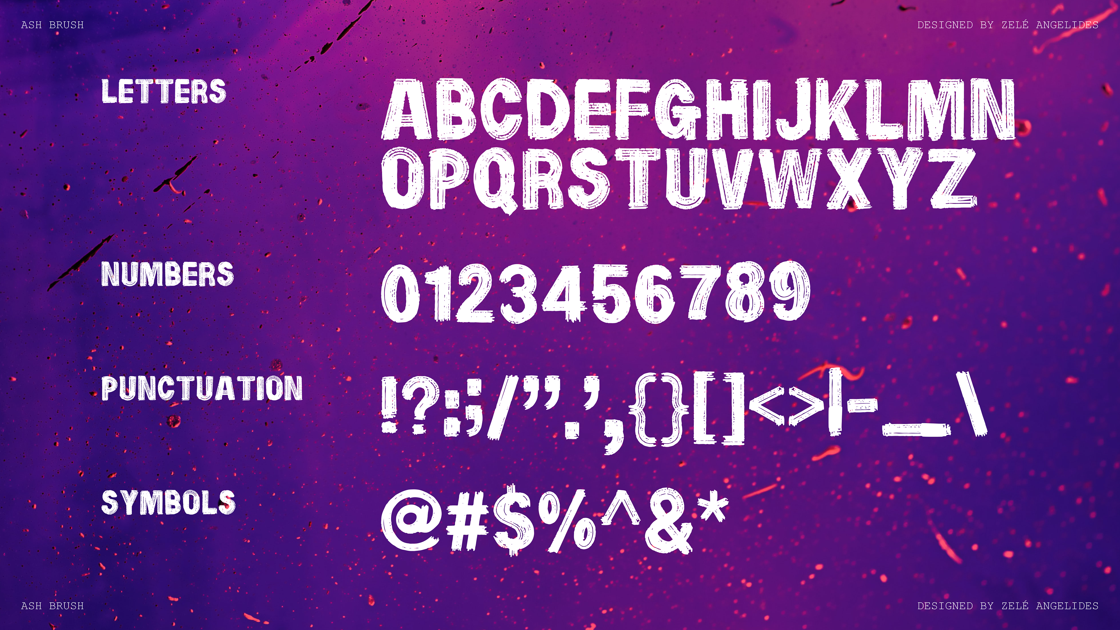 SASHA BRUSH is a hand painted type familiy. It is bold and condensed and celebrates hand mark making.